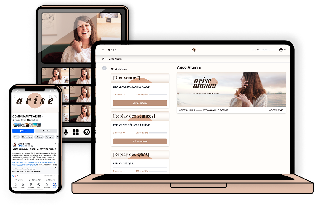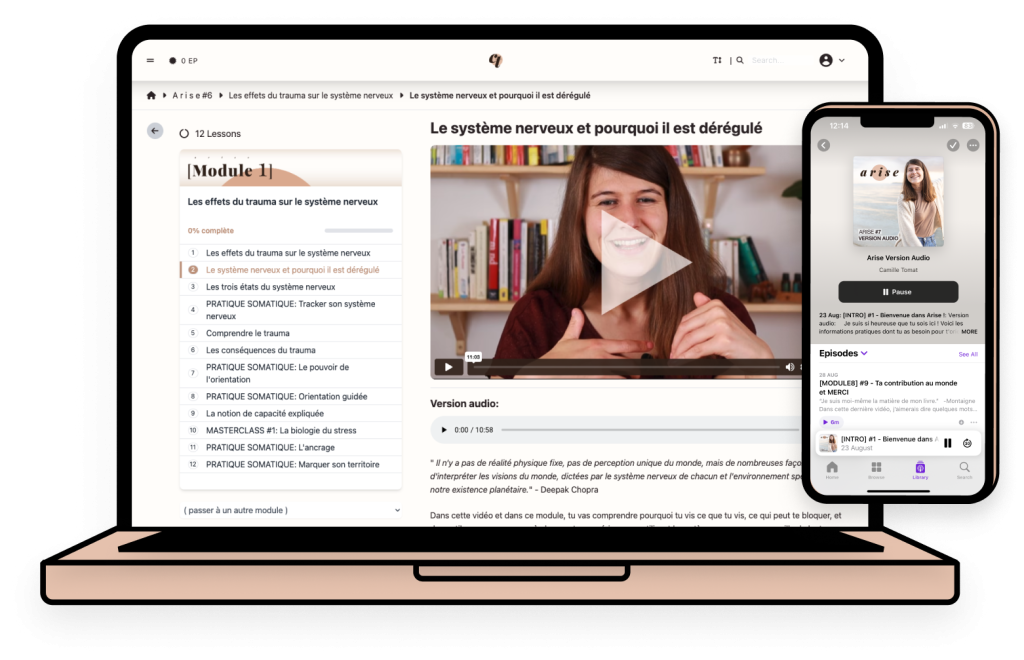 Notre démarche, au sein du programme ARISE, c’est que tu puisses te déposer dans le programme et que, pour une fois, tu aies l’opportunité de t’engager en sachant que TU AS LE TEMPS. Voilà pourquoi ARISE ALUMNI existe. Voilà pourquoi tu as accès à tout le contenu et à des séances en live de façon continue. Parce que faire ce travail en se sentant sous pression ne marche pas. C’est tout ton système nerveux qui va se recâbler grâce à ce travail et cela prend du temps.